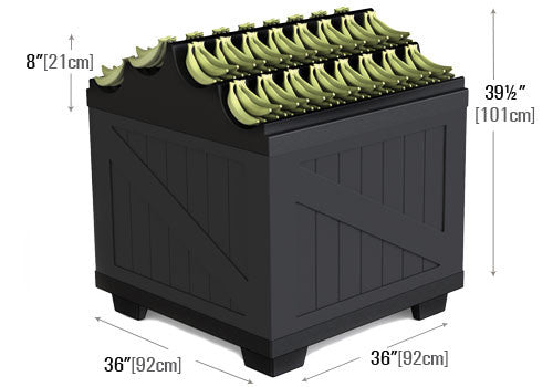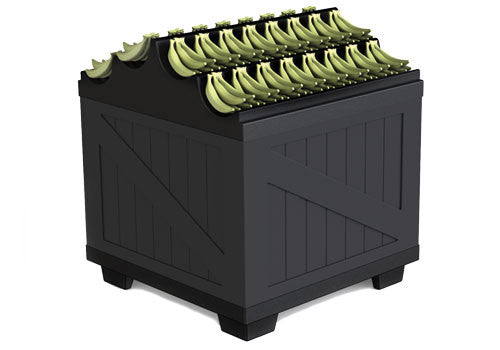 Double sided banana riser turns your 3”×3” [92×92cm] orchard bin into a banana display. Put 2 or more side by side for a dramatic run and watch banana sales go up. Banana riser shown sitting atop BLS36 bin.