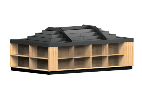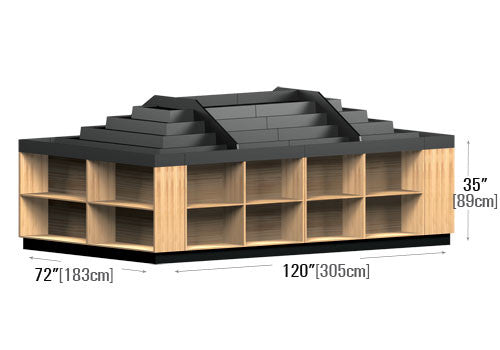 Modular Dry Table with shadow box shelving all around. This model is non-reversible. Comes complete with your choice of risers.