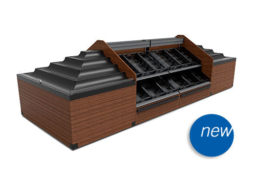 Streamlined design euro table display with price track system. Fits up to 24 RPCs with two banana endcaps.