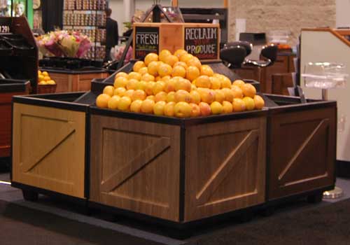 Give your department a “farm stand” feel with this square Orchard Bin. All plastic bin comes complete with a top, 4 sides and a base. Includes ABS base and a 5" deep top. Bin is easy to assemble and completely knocks down to facilitate shipping and storage. Available in different colors - acajou mahogany, light rustic maple and others