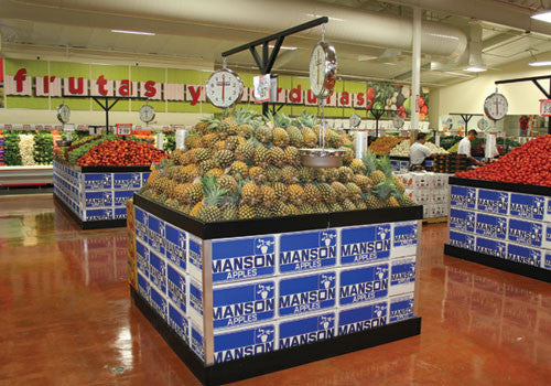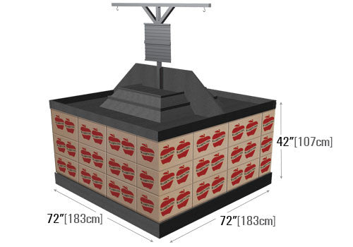 This economical cube works well in smaller departments or in addition to the larger version of this table to create variety in merchandising your department. Apple Boxes not included.
