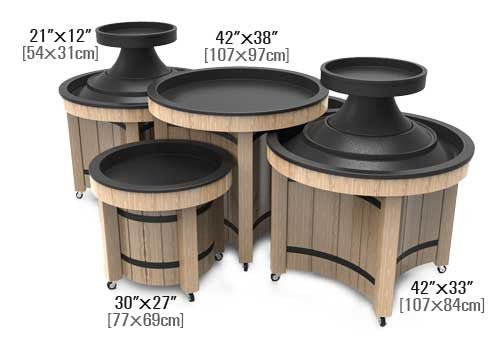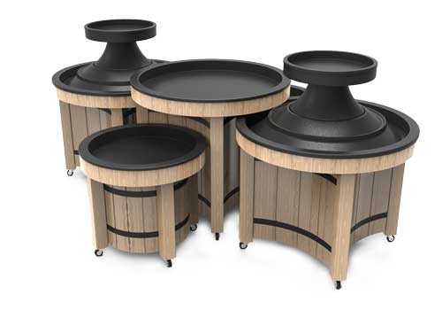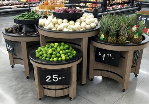 Multi level round bins are an eye catching addition to your produce department. With several different styles to choose from, there is bound to be one that suits your existing decor. Pull-out shelves provide space for cross merchandising.