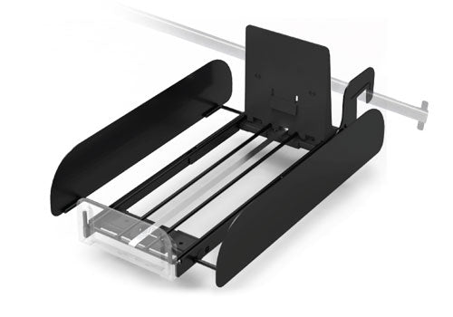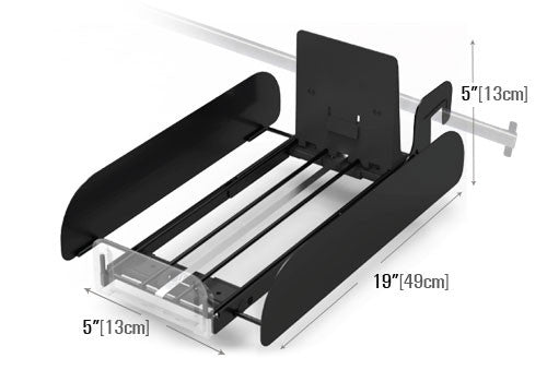 5" wide frame MegaPusher is available in 19" depth and expands from 5.3" to 12" widths and dividers. MegaFront Stops available in two sizes: 3½" and 6". Universal MegaBar fits into virtually all cases. Stock color is black. Custom colors available.