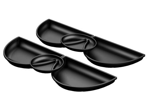 24”[61cm] wide half round tray creates unique wave look in your department. Adds visual dimension. Curved front overhang shelf 3”[8cm].