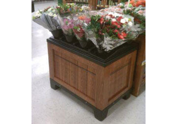 Multiple level floral bins create an interesting display that are easy to shop. These attractive displays are an economic alternative to their wooden contender. Available with or without corner brackets. Knocks down completely for easy shipping and storage. Comes as wood or plastic finish.