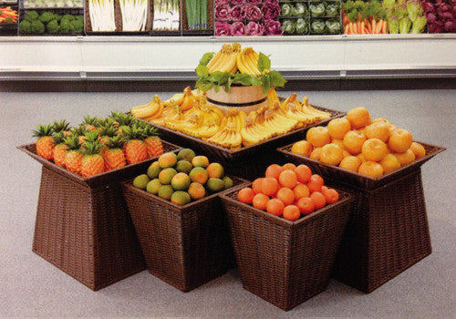 Durable and easy to maintain resin basket. Basket can be placed upside down. Stackable and available in three sizes. Block made of ABS material. Block stackable to increase height. Also available in round shape (see BKT-RD).