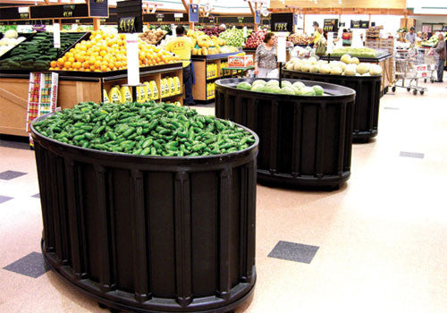 This island bin has contemporary appeal, is great for use as an Ice table, and is available with an optional drain kit.