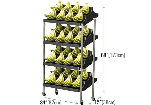All steel construction with contoured ABS plastic banana trays. Mobile display perfect for cross merchandising in any part of the store.
