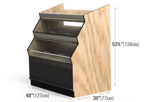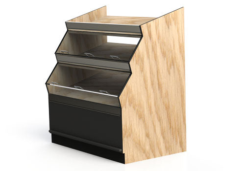 Similar to BR435, in addition to the variety of bakery slots, this display has an easy access top shelf for high turnover bakery packaged goods.