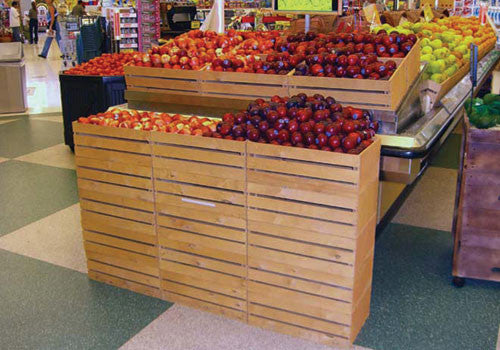 6½”[17cm]  deep wood crate is a great addition to any department. Use on tables or side stacks for a visually appealing presentation. Custom sizes available. Call for a quote.