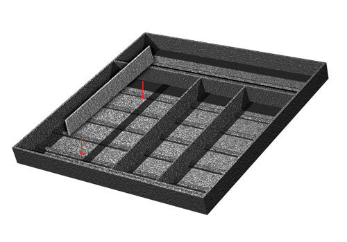 Perfect for smaller, compartmental items like chilies. For use with 48”×48” [122×122cm] euro table top. Shown here with three removable dividers.