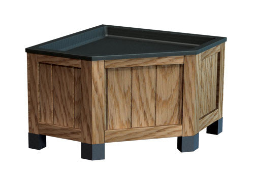 Wedge bins series which allows for several different configurations. Optional pedestal risers available in various shapes and sizes.