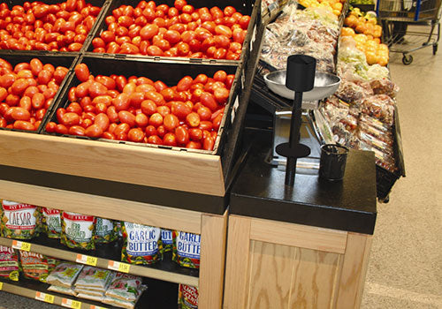 Multiple levels create an interesting display that is easy to merchandise and shop. Solid wood sides are made even more durable with metal accents that protect the legs and provide a supportive base for the high quality plastic. Available in 6 different sizes that can be arranged in several different configurations. All bins knock down flat for minimized shipping cost.