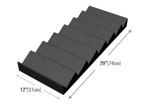 This seven step tray is designed for packaged items such as mushrooms. Slanted and tiered for a more appealing cascading presentation.
