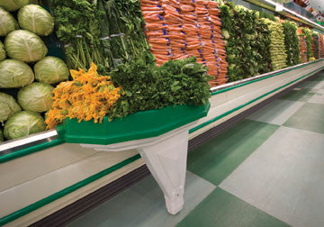 Designed to fit all produce cases for merchandising featured or high-profit items. Adjustable to accommodate different height wet racks or dry tables.