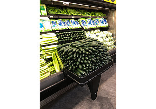 Designed to fit all produce cases for merchandising featured items. Easily adjustable leg can also be removed for storage. Also available in Black.
