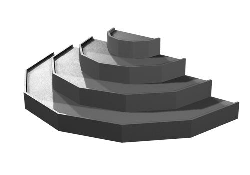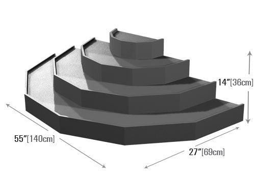 This unique half-moon stepped design to creates visual interest in your department and can be used on round or square end display resulting in a high profile presentation that can be seen from all angles.