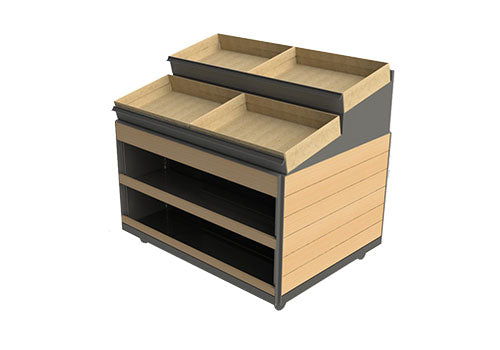 Riser designed to hold 4 RPCs. Riser has built-in price track sign.