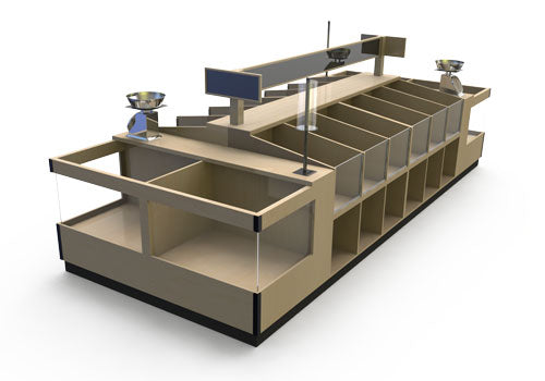 Similar to SPW108, this table includes a complete price track system, table top scales and plastic bag holders.